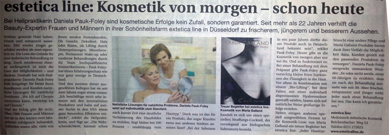 Bei Heilpraktikerin Daniela Pauk-Foley sind kosmetische Erfolge kein Zufall, sondern garantiert. Seit mehr als 22 Jahren verhilft die Beauty- Expertin Frauen und Männern in ihrer Schönheitsfarm estetica line in Düsseldorf zu frischerem, jüngerem und besserem Aussehen.